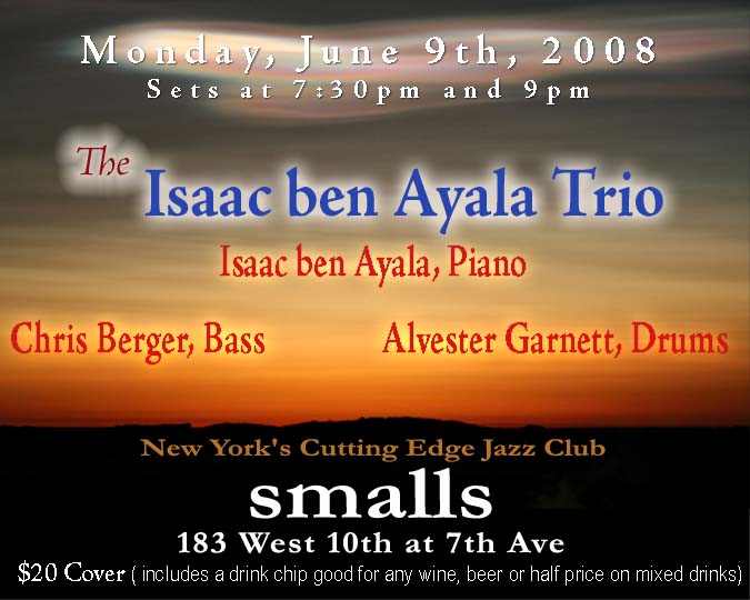 Isaac ben Ayala gigs 1990-2017 SavionGlover SmallsJune8 2008 Promo BryantPark2012 Promo Spaulding Blues Up-Over Cover RonnellBey SpringIsHere Quincy Jones- Paris 2000 SultansOfSwing Volora WendellLoganMemorialPicture web WestSideStory Yalla The Lenox Lounge ThreeMoTenors « ‹ of 2 › »